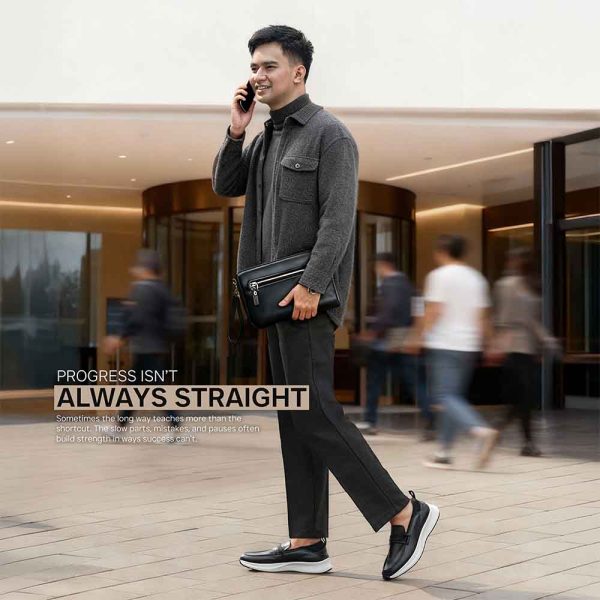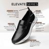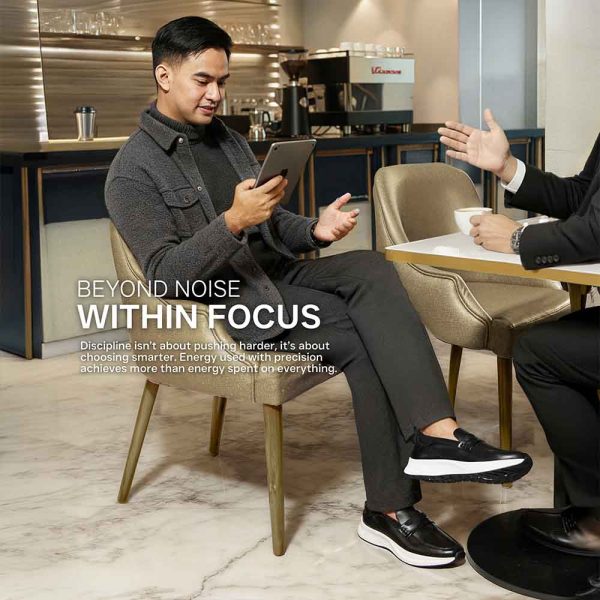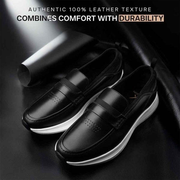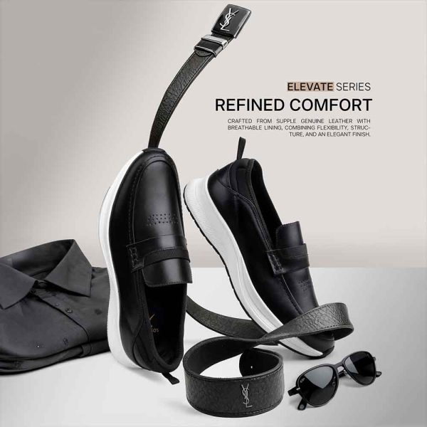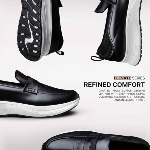 Loafers ini di desain memadukan taste klasik dan modern dalam tampilan elegan yang dinamis. Penambahan elemen sporty pada bagian pergelangan sepatu yg memberikan kenyamanan extra, sekaligus memberikan karakter yang fresh dan unik pada sepatu formal modern ini.