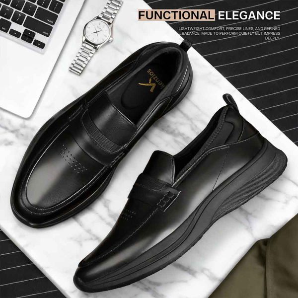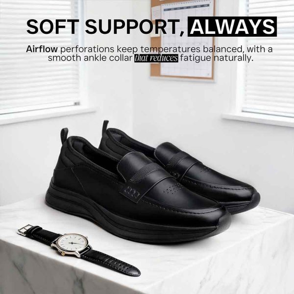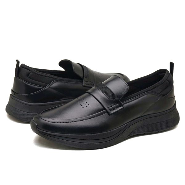 | Loafers ini di desain memadukan taste klasik dan modern dalam tampilan elegan yang dinamis. Penambahan elemen sporty pada bagian pergelangan sepatu yg memberikan kenyamanan extra, sekaligus memberikan karakter yang fresh dan unik pada sepatu formal modern ini.