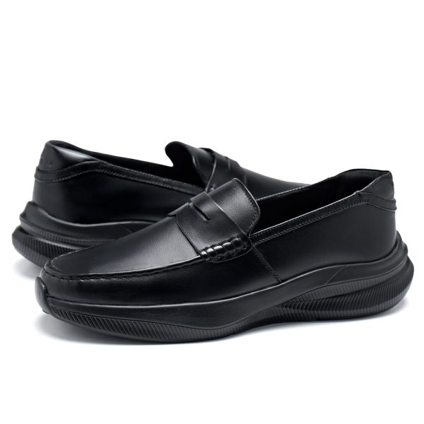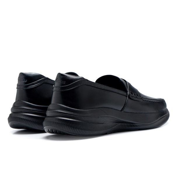 | Sepatu ini menampilkan desain Penny Loafer dengan pendekatan elegant modern, menghasilkan tampilan yang rapi dengan konsep kekinian dengan sentuhan kombinasi aksen pada bagian padding belakang yang memberikan kesan sporty.